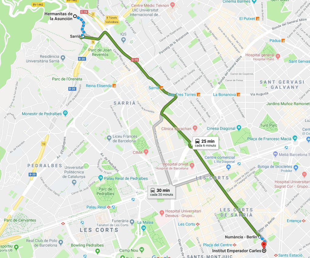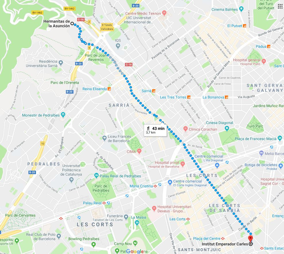 Després de tornada el Jose Luis en va voler fer una ruta turística pel barri de Sarria i vam anar caminant fins a l'institut, era 1 hora de trajecte.